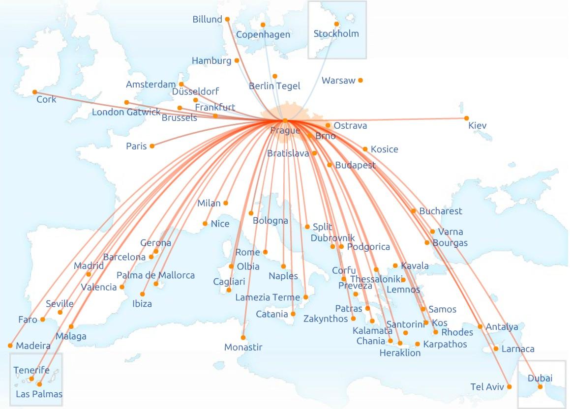 Czech Airlines j.s.c. (CSA České aerolinie, a.s.) es la compañía aérea de bandera de la República Checa y forma parte del Grupo Smartwings, prestando sus servicios desde octubre de 1923, lo que la convierte en una de las cinco compañías aéreas más antiguas del mundo. Czech Airlines es miembro fundador de la Asociación Internacional de Transporte Aéreo (IATA) y es miembro de la alianza SkyTeam desde 2001, como se menciona en el mapa de rutas de Czech airlines.
